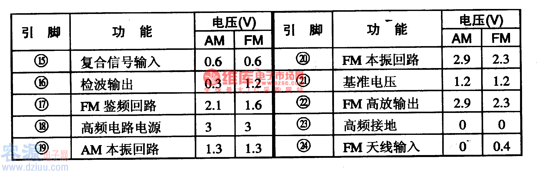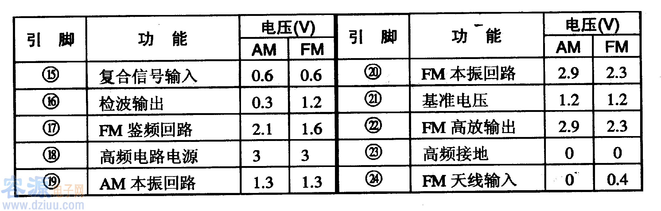 LAl816集成電路有兩種封裝形式,其中:LAl816采用24腳雙列直插封裝;LAl816M采用24腳雙列扁平封裝。這兩種IC的電參數(shù),內(nèi)電路方框圖,引腳排列及功能一致,只是外形封裝不同。LAl816/M集成電路的引腳功能及數(shù)據(jù)見(jiàn)表1-1所列。