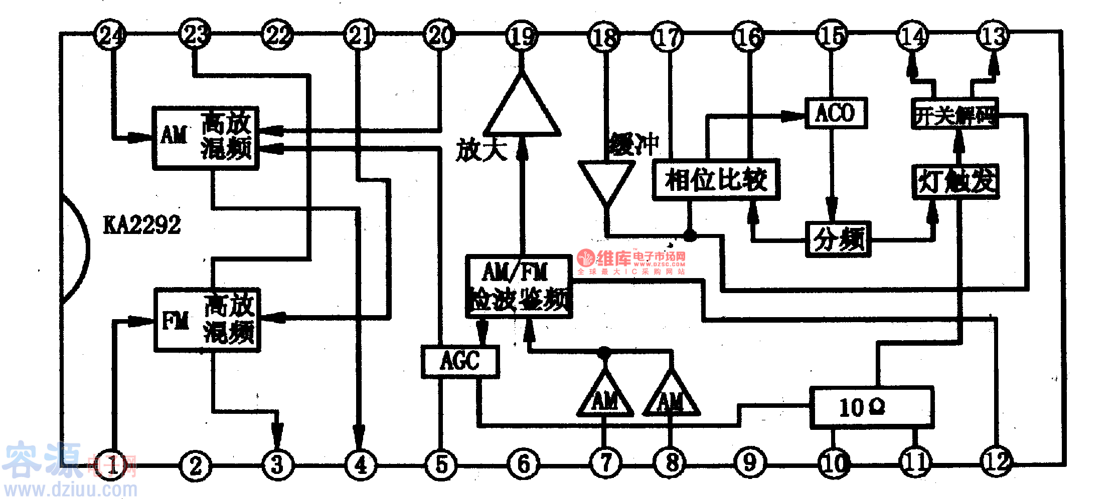 KA2292是韓國三星(SAMSUNG)公司近年來推出的新穎單片音響集成電路,內含調頻立體聲解碼電路,應用在音響電路中,主要是用來完成AM/FM多波段收音功能。 1、KA2292主要功能 KA2292集成電路的調頻部分主要包