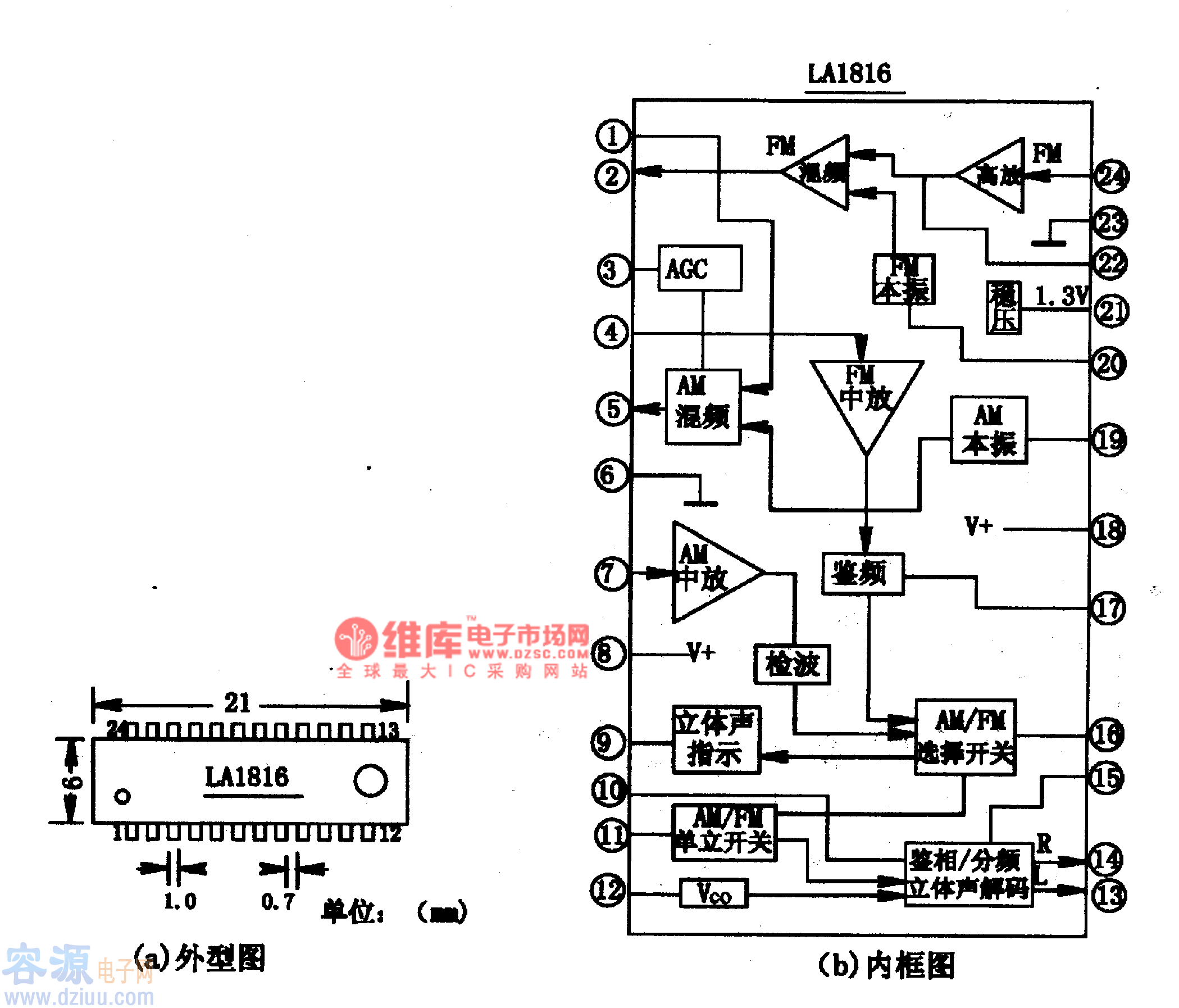 LAl816、LAl816M-單片AM/FM立體聲收音集成電路圖