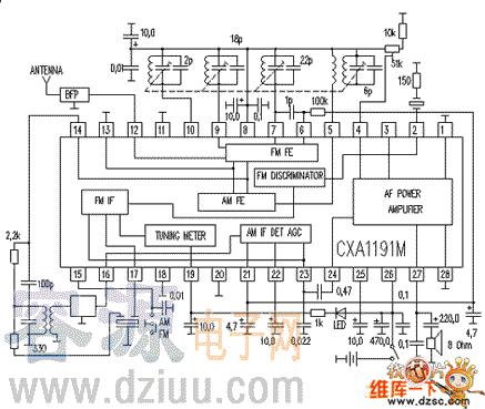CXA1191M收音電路圖如下圖所示
