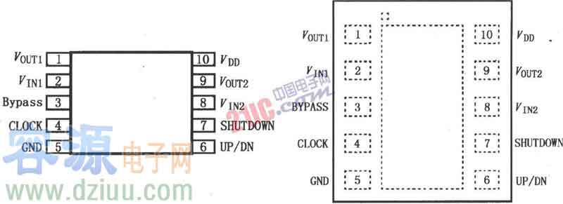 LM4916用于雙聲道放大器電路左、右聲道音頻信號分別輸入LM4916的1、5腳,經過內部放大器放大后分別由9、7腳輸出,經過耦合電容Co加到各自聲道的揚聲器上。LM4916的2腳外接關斷控制,當2腳接VDD時允許工作;接低