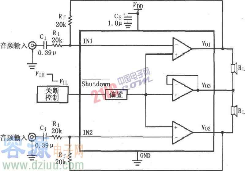 雙聲道音頻功放集成電路圖