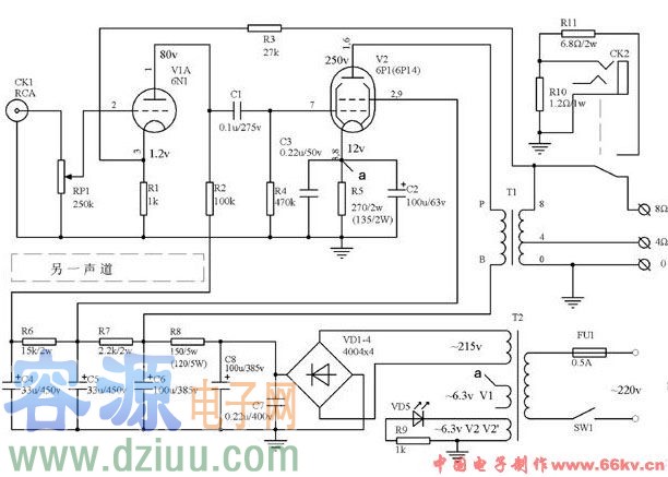 簡易實(shí)用小功率膽機(jī)電路