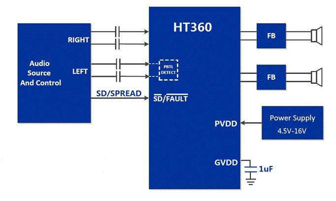 深圳市永阜康科技有限公司現在推廣一顆I2S數字輸入20W立體聲無電感閉環D類音頻功放芯片HT566,適合應用于藍牙音箱、WiFi音箱、智能音箱、公交車語音播報系統等領域。