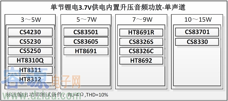 2.5V-5.5V供電內置升壓音頻功放選型表-單聲道