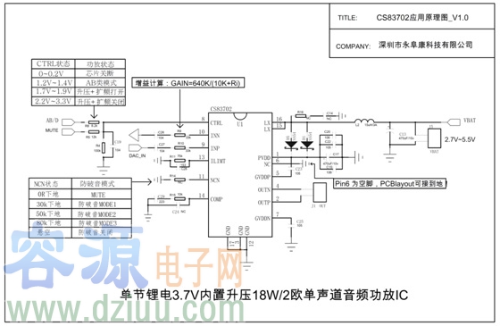 HT8513 單節鋰電供電內置動態同步升壓5W單聲道音頻功放