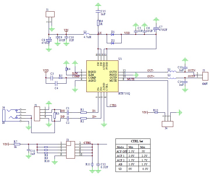 HT8731具有AB類和D類的自由切換功能,在受到D類功放EMI干擾困擾時,可隨時切換至AB類音頻功放模式。