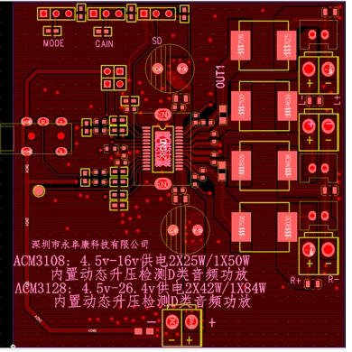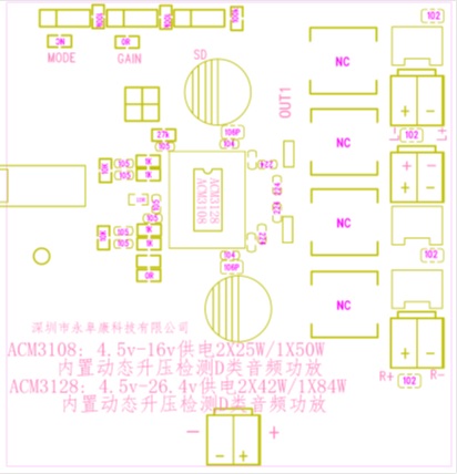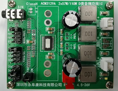 深圳市永阜康科技有限公司現在大力推廣具備動態調整升壓CLASS H功能的D類功放芯片系列-ACM31XX系列,功率覆蓋單聲道10W-100W、雙聲道2*10W-2*50W,供電滿足1-5串鋰電池及鉛酸電池的應用,能夠保證足夠功率輸出及音質體驗的前提下,極大延長電池的續航時間。