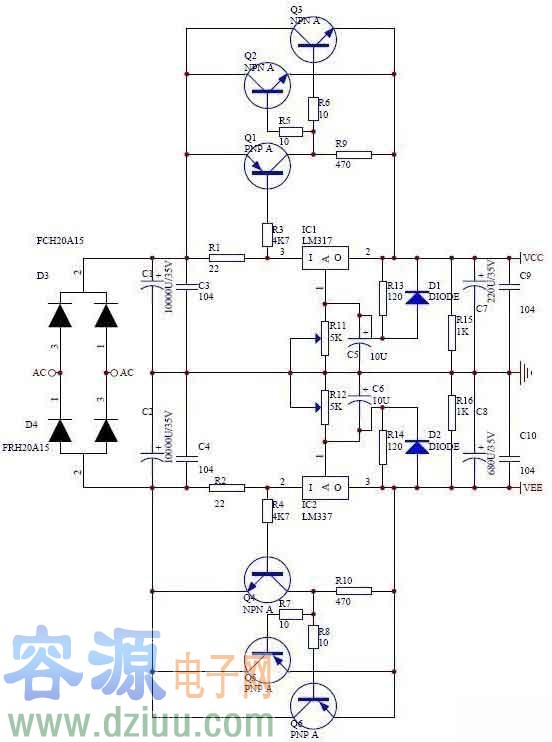 LM317/LM337正負穩壓擴流電源電路圖(圖文)
