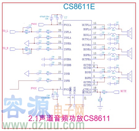 三.CS8611E _2.1聲道音頻功放部分原理圖