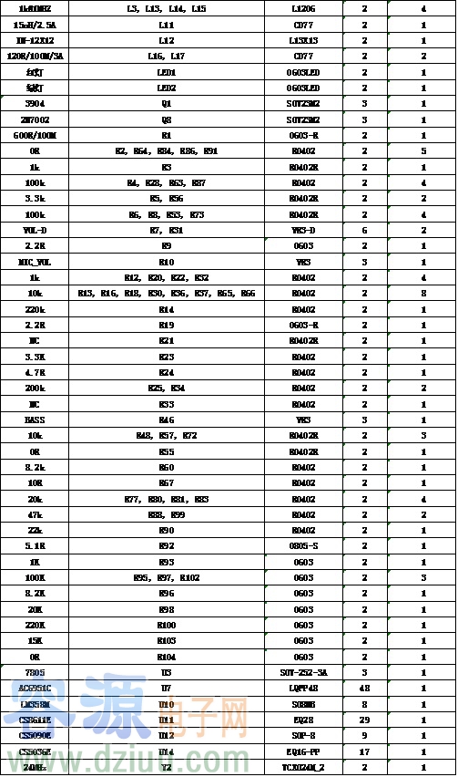 七. CS5090E+CS5036E+CS8611E+AC6951C整體板物料清單