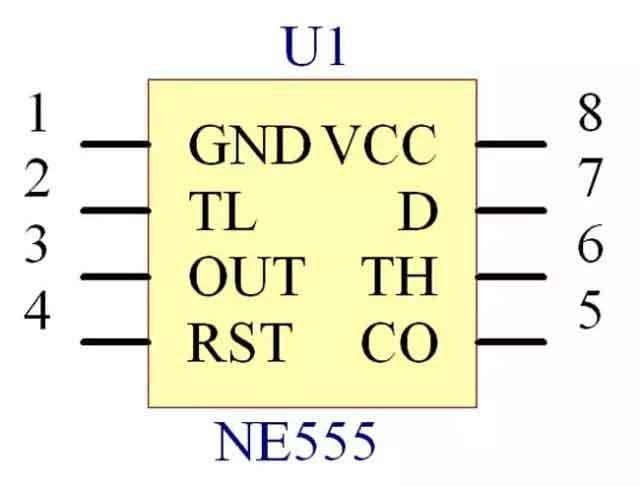 8腳:外接電源VCC,雙極型時基電路VCC的范圍是4.5 -16V,CMOS型時基電路VCC的范圍為3-18V,一般用5V。
