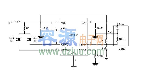 5056充電IC是對(duì)4.2V鋰離子電池充電電路,5056提供一個(gè)小型簡(jiǎn)單的充電電路