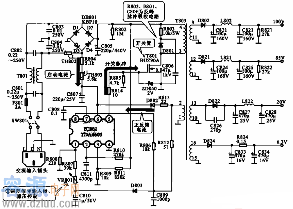 基于TDA4605集成電路的開(kāi)關(guān)電源電路