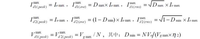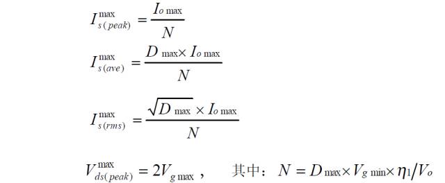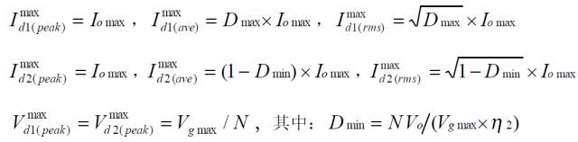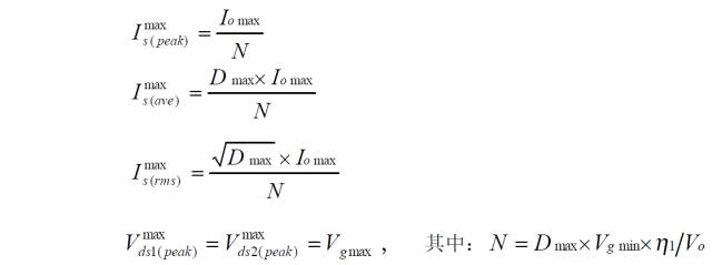 二極管去磁雙正激變換器的功率器件設計公式![]()