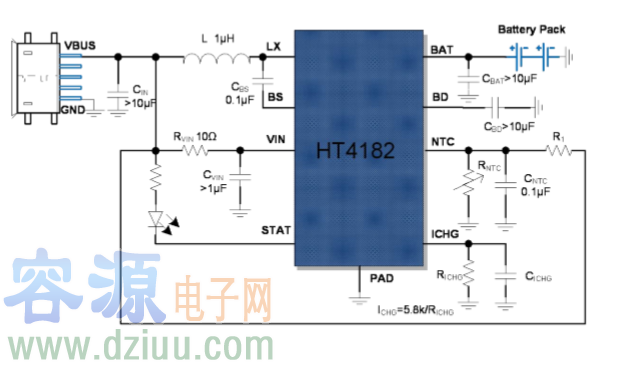隔離二極管。熱反饋可對(duì)充電電流進(jìn)行自動(dòng)調(diào)節(jié),以便在大功率操作或高環(huán)境溫度條件下對(duì)芯片溫度加以限制。充滿電壓固定于 4.2V,而充電電流可通過(guò)一個(gè)電阻器進(jìn)行外部設(shè)置。當(dāng)電池達(dá)
