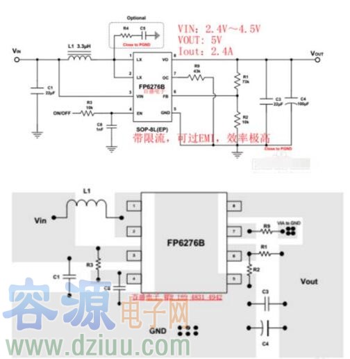 3V,3.3V.3.7V升壓輸出5V2A/2.4A,F(xiàn)P6276B超高效率的同步整流升壓方案。實際應用足2.4A。
