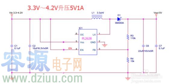 3.7v升壓5v電路圖(一)