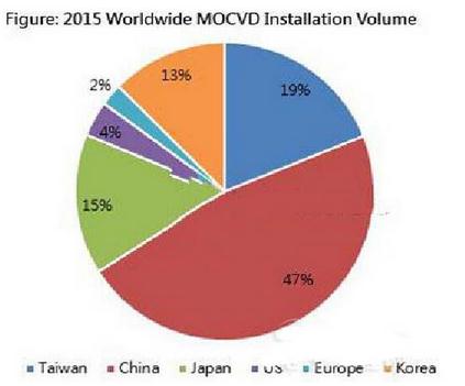 臺灣LED制造商消息,2015年全球LED芯片供應過剩的比例將達到22%,其主要原因是大陸LED外延片及芯片廠商產能的不斷擴大。2015年全球將安裝3,130臺MOCVD設備,其中大陸占比47%,臺灣占比19%,日本和韓國分別占比15%和13%。