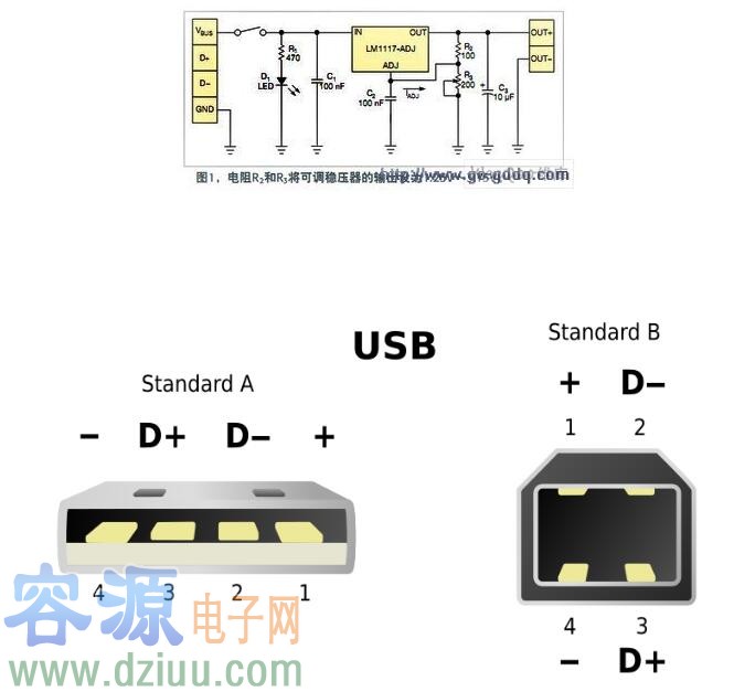 按USB接口標準,每臺電腦及其他帶有USB口電子設備都能外設提供500 mA的5V±5%供電。帶電源的USB集線器 也能提供這種供電能力。用USB端口可以為外部 電路 供電,在沒有其它 直流電源