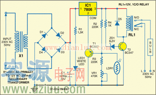 基于7806三端穩(wěn)壓器實(shí)現(xiàn)自動(dòng)燈控制器電路