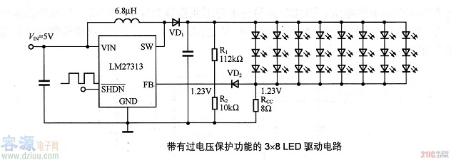 帶有過電壓保護功能的3×8LED驅動電路圖