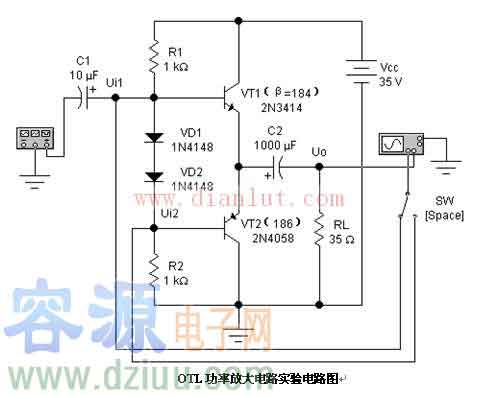 OTL電路為單端推挽式無輸出變壓器功率放大電路。通常采用電源供電,從兩組串聯的輸出中點通過電容耦合輸出信號。OTL電路不再用輸出變壓器,而采用輸出電容與負載連接的互補對稱功率放大電路,使電路輕便、適于電