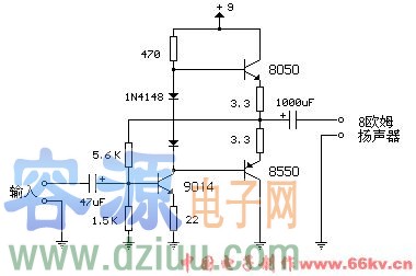 用8550和8050制作的簡單晶體管小功放電路