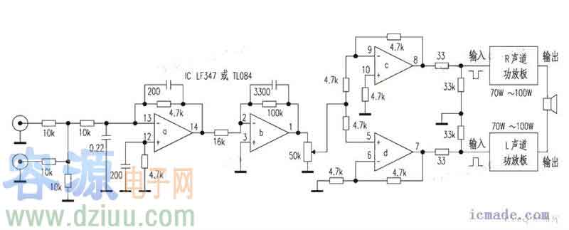 帶通式低音炮電路原理圖